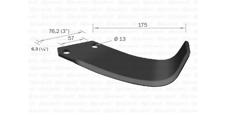 | 0504D ou 0504E | Enxada p/ rotativa LAVRALE tipo C dir. ou esq. 6,3mm (1/4") |
