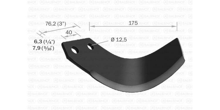 | 0325D ou 0325E | Enxada p/ rotativa LAVRALE REFORÇADA tipo C dir. ou esq. 7,9mm (5/16") |